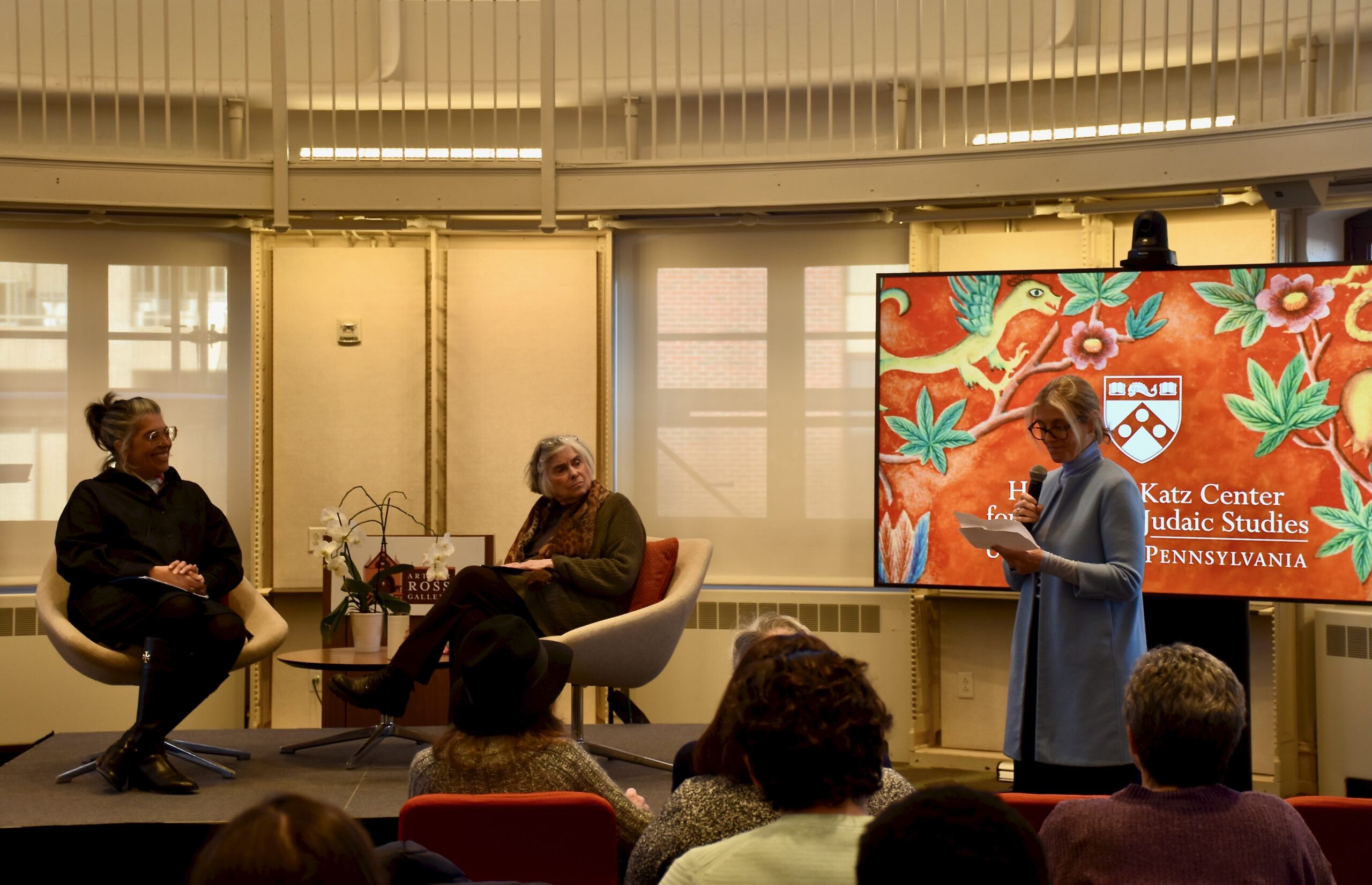 Introductions were made by Natalie Dohrmann, associate director of Penn’s Herbert D. Katz Center for Advanced Judaic Studies, which co-sponsored the event. A recording of the discussion is available on the Arthur Ross Gallery’s You Tube page.