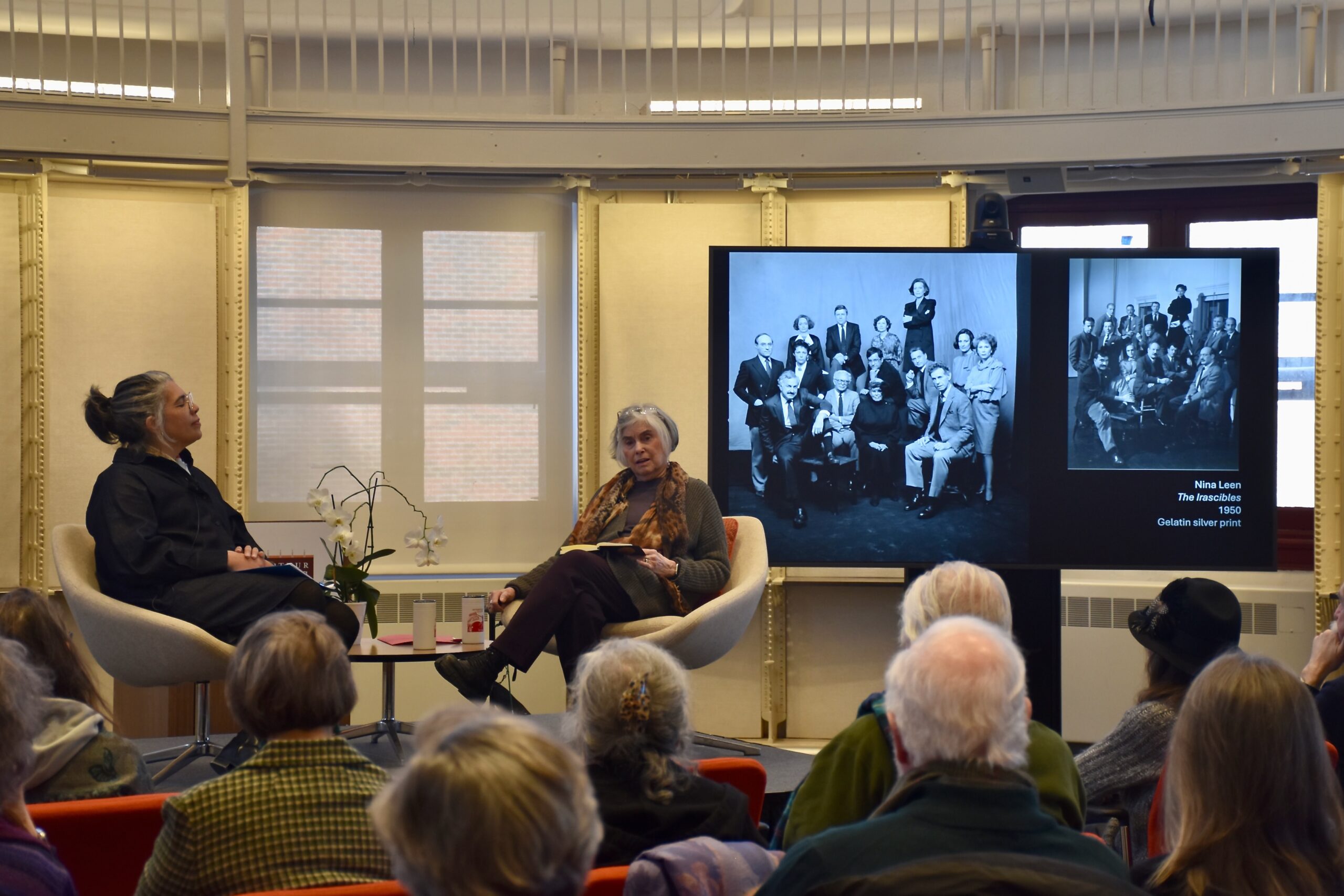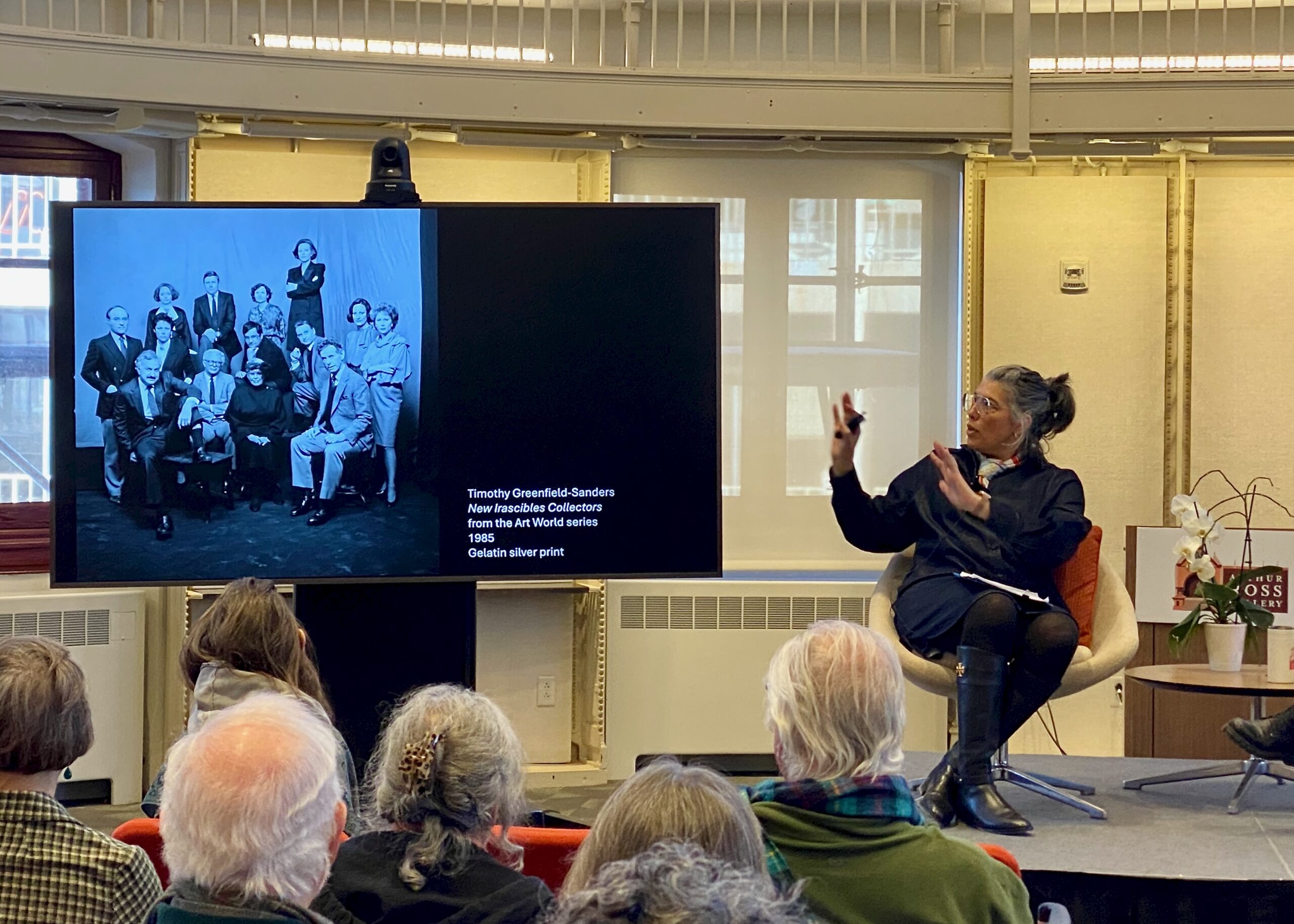 Shaw said the idea for the Collecting the New Irascibles exhibition came to her when she saw the1985 portrait, New Irascibles The Collectors (from the series Art World), by Timothy Greenfield-Sanders. The photo is in the collection of Hubert Neumann, a 1952 graduate of Penn’s Wharton School. “I said ‘Hubert, is that you?’” Shaw told the audience. And indeed, Neumann confirmed he is one of the 14 pictured, along with other ambitious and dedicated supporters of the era’s American art scene.